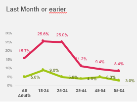 Εδώ η στροφή έγινε προς πλατφόρμες Τ/Ο περιεχομένου. Η έρευνα κατέγραψε μια εντυπωσιακή επιτάχυνση αυτής της στροφής: Το 25% στις ηλικίες 18-34 έκανε την κίνηση αυτή τον τελευταίο μήνα πριν την έρευνα (καλοκαίρι), ενώ την προηγούμενη χρονιά, το ποσοστό ήταν μόλις 9%