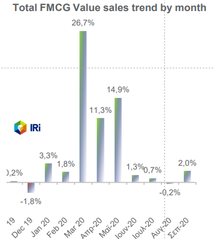 Καταναλωτές: Εκτός από τη στροφή στο διαδίκτυο, άλλαξαν και οι προτεραιότητές τους. Τώρα η εξασφάλιση καλύτερων και πιο αυτόνομων λύσεων για τη ζωή ΜΕΣΑ στο σπίτι, έγινε προτεραιότητα. Οι αγορές ηλεκτρονικού εξοπλισμού και η συνδεσιμότητα έγιναν αδιαπραγμάτευτη ανάγκη, αλλά και ο οικογενειακός προϋπολογισμός, όλο και περισσότερο είχε κέντρο το σπίτι: Διαμερίσματα βάφτηκαν και ανακαινίστηκαν, επιπλώσεις και παλιά στρώματα άλλαξαν και η εύκολα μετρήσιμη κατανάλωση στο super market, έκανε εντυπωσιακό άλμα στο πρώτο κύμα της ασθένειας, ενώ το καλάθι αγορών υπέστη σημαντικές αλλαγές. Η IRI, κατέγραψε τα παρακάτω: